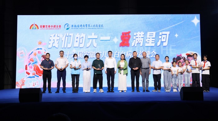 5月30日晚,在“六一”国际儿童节即将到来之际,“我们的六一·爱满星河”——第十六届安徽省儿童白血病主题公益晚会在我校第二附属医院南广场如期举行。安徽省残疾人福利基金会副理事长董介林,校党委书记王琦,新华社安徽分社党组成员、副社长、总编辑李亚彪,安徽省卫健委二级巡视员郭德春,安徽省红十字会党组成员、秘书长曹芦松等出席晚会。儿童白血病患者及家长、医护人员、爱心大使、志愿者代表、爱心企业团体代表、各媒体记者等近千人参加晚会活动。安徽省儿童白血病公益“爱心大使”阿进、刘杨波担纲主持。