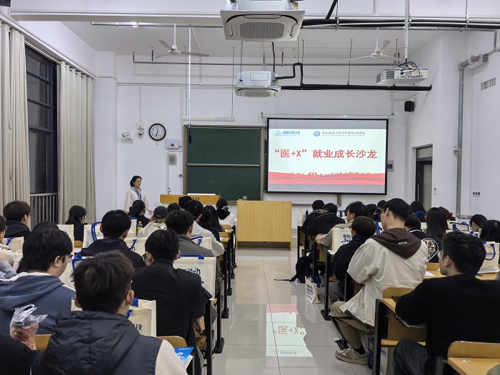 10月21日晚,生物医学工程学院举办“医+X”就业成长沙龙暨2026届毕业生专场招聘,安徽中技国医医疗科技股份有限公司(简称“国医科技”)招聘团队走进校园,以“产业聚才岗位对接职业赋能”为主题,面向学院2026届毕业生开展专场宣讲。​